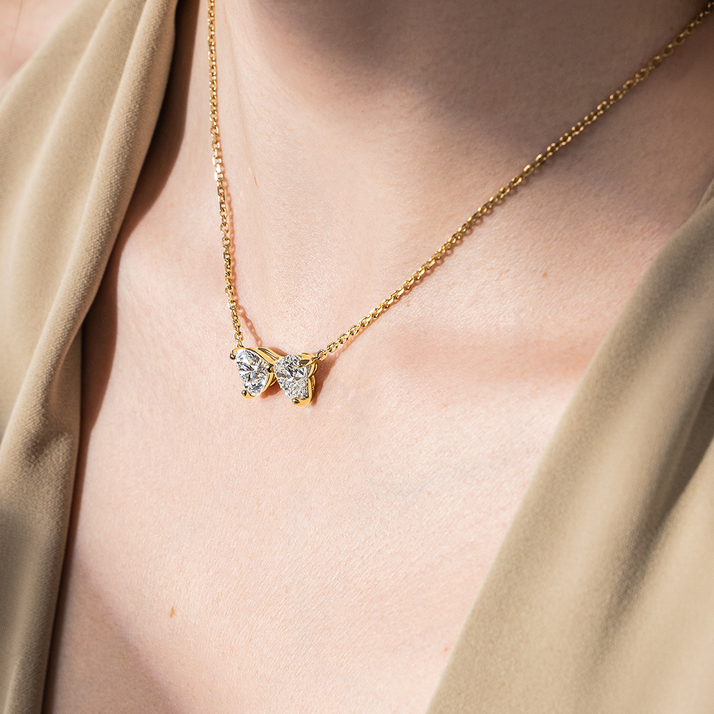 Herzförmige Halskette mit Schmetterling aus Gelbgold